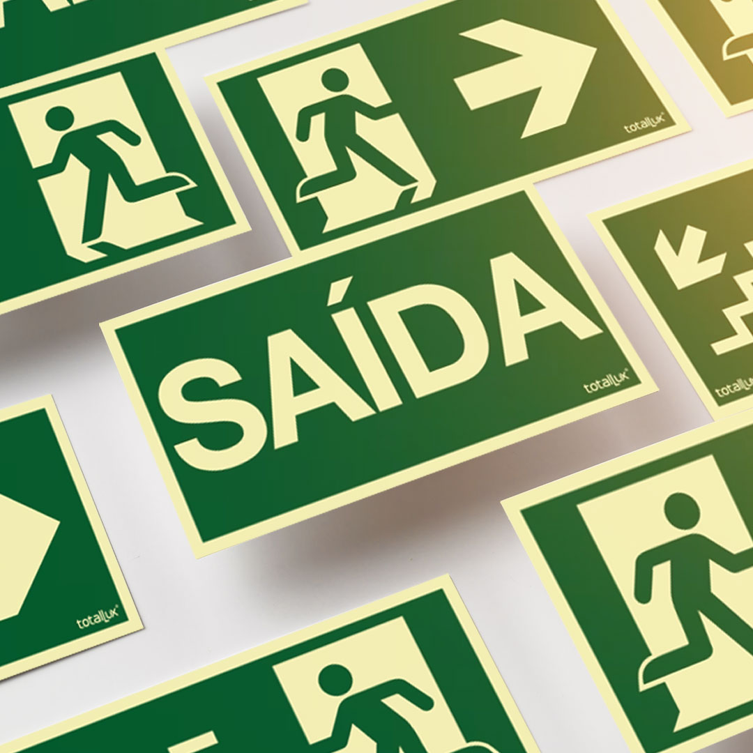 Este tipo de sinalização indica saídas de emergência, direções de fuga ou localização de algum equipamento útil em situações emergenciais, como incêndio, alagamento, vazamento de gás, entre outros. São úteis para guiar trabalhadores e visitantes aos rumos corretos oferecendo capacidade de fuga ou até de solução para o problema (como um extintor num incêndio, por exemplo).